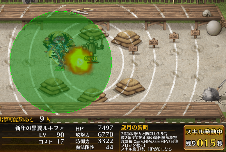 覚醒スキルは序盤では使えないけど、20体討伐してたら置いて少しで60コスト稼いで射程バフとCTカット