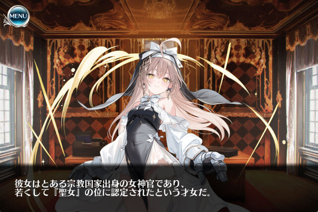 どっかのクリスマスやバレンタイン腹黒聖女を思い出させてくれる様な衣装デザイン、下から少し見える小さなたわわ。